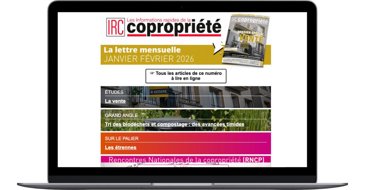 Si votre question est sélectionnée, vous la verrez publiée dans la prochaine édition du Courrier des lecteurs de Informations Rapides de la Copropriété. Vous recevrez une réponse complète, rédigée par nos professionnels.